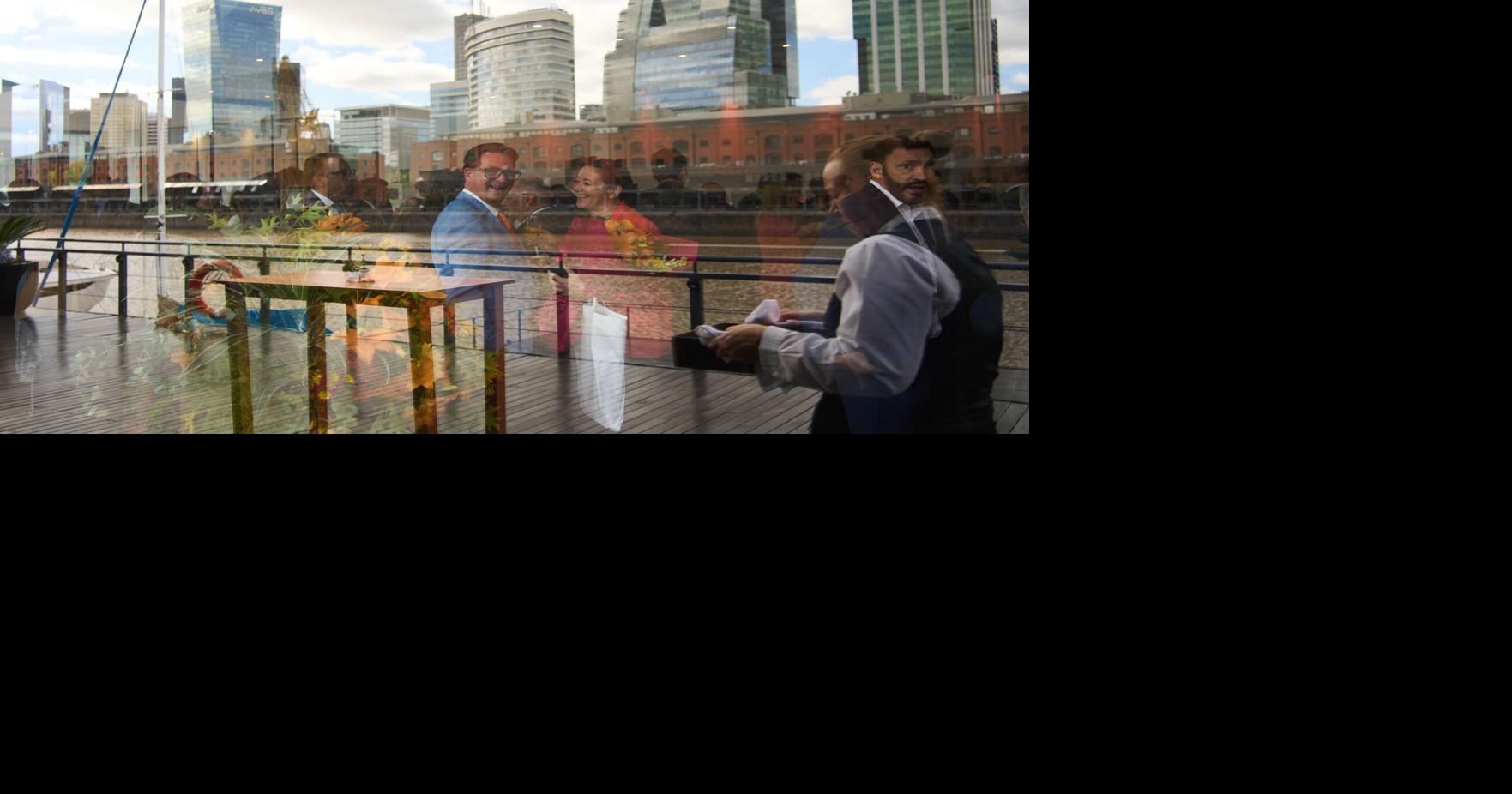 Los invitados se reflejan en una ventana durante una ceremonia organizada por la embajada holandesa para el rey.