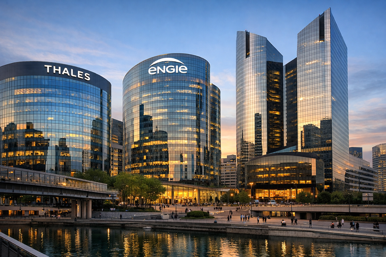 Thales y Engie lideran el CAC 40 impulsadas por defensa y energía, mientras Société Générale cae por rotación hacia sectores más defensivos.