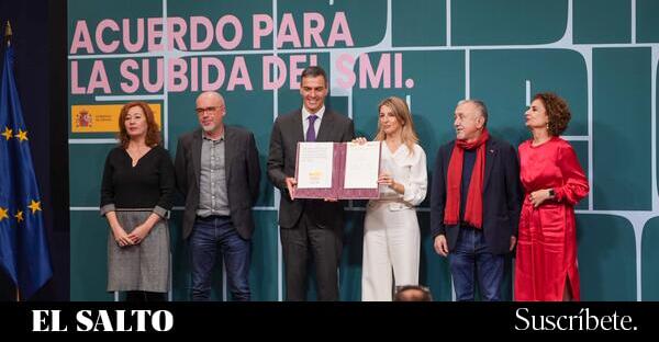Los secretarios generales de CCOO y UGT, Unai Sordo y Pepe Álvarez, no se conforman con la subida del salario mínimo, sino que plantean nuevas reivindicaciones tanto al Ejecutivo, cuyos pesos pesados han acudido al acto protocolario del acuerdo sobre el SMI, como a la patronal, que ya se bajó de esta negociación. Ambos dirigentes — Noticias Obreras