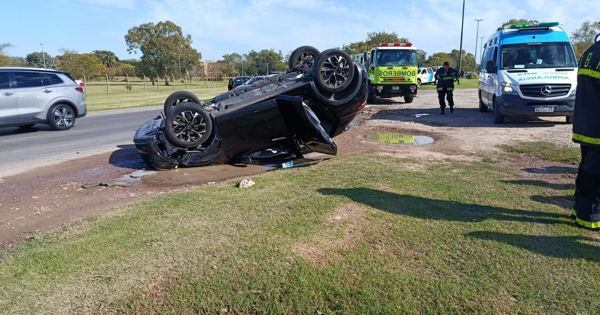 Un fuerte accidente en Camino Centenario dejó una camioneta volcada tras chocar con un Fiat Cronos. Ocurrió cerca del Parque Ecológico.