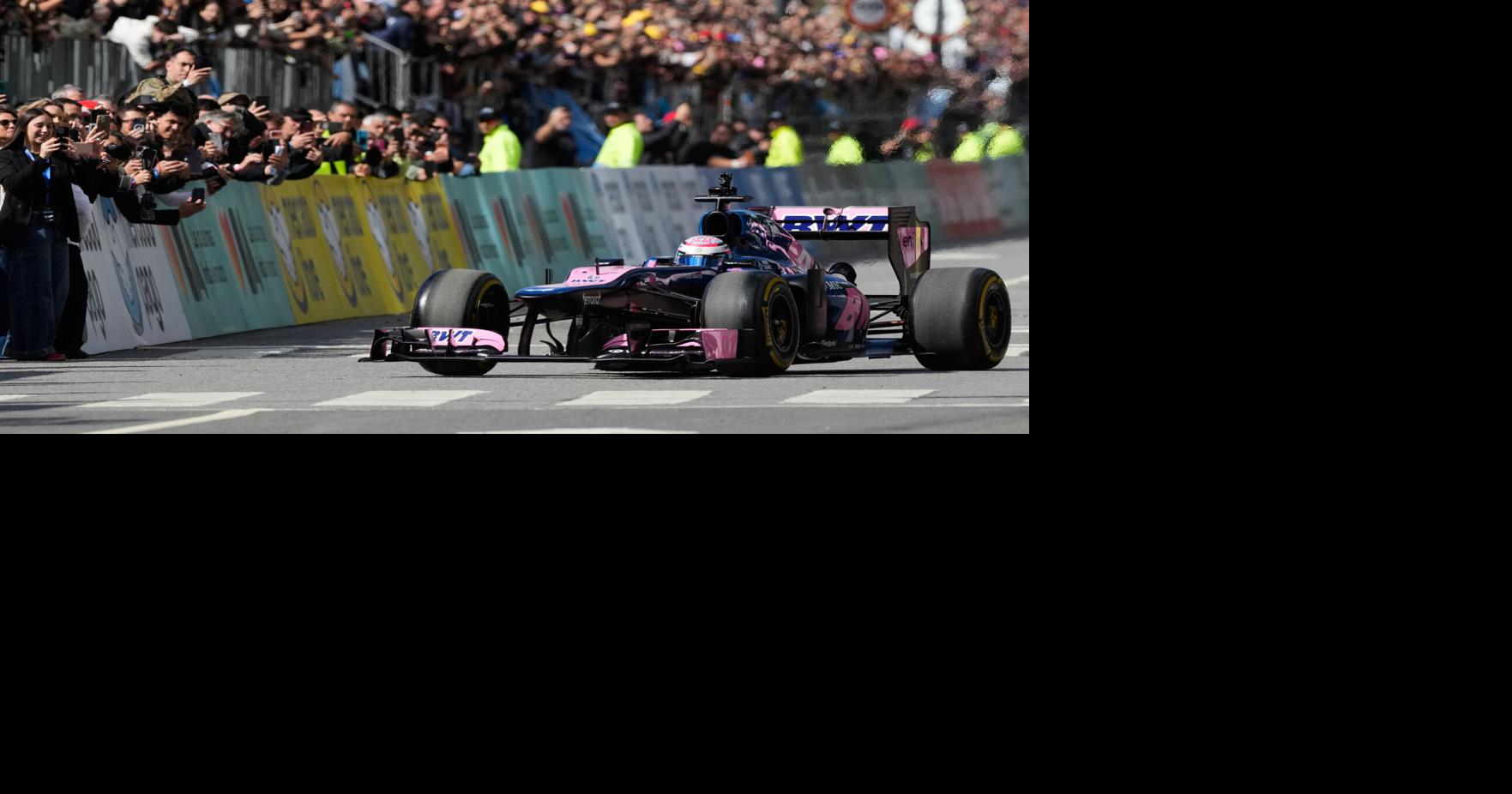 El piloto argentino de Fórmula 1 alpina Franco Colapinto conduce durante una demostración en Buenos Aires, Argentina, el domingo 26 de abril de 2026. (Foto AP/Gustavo Garello)